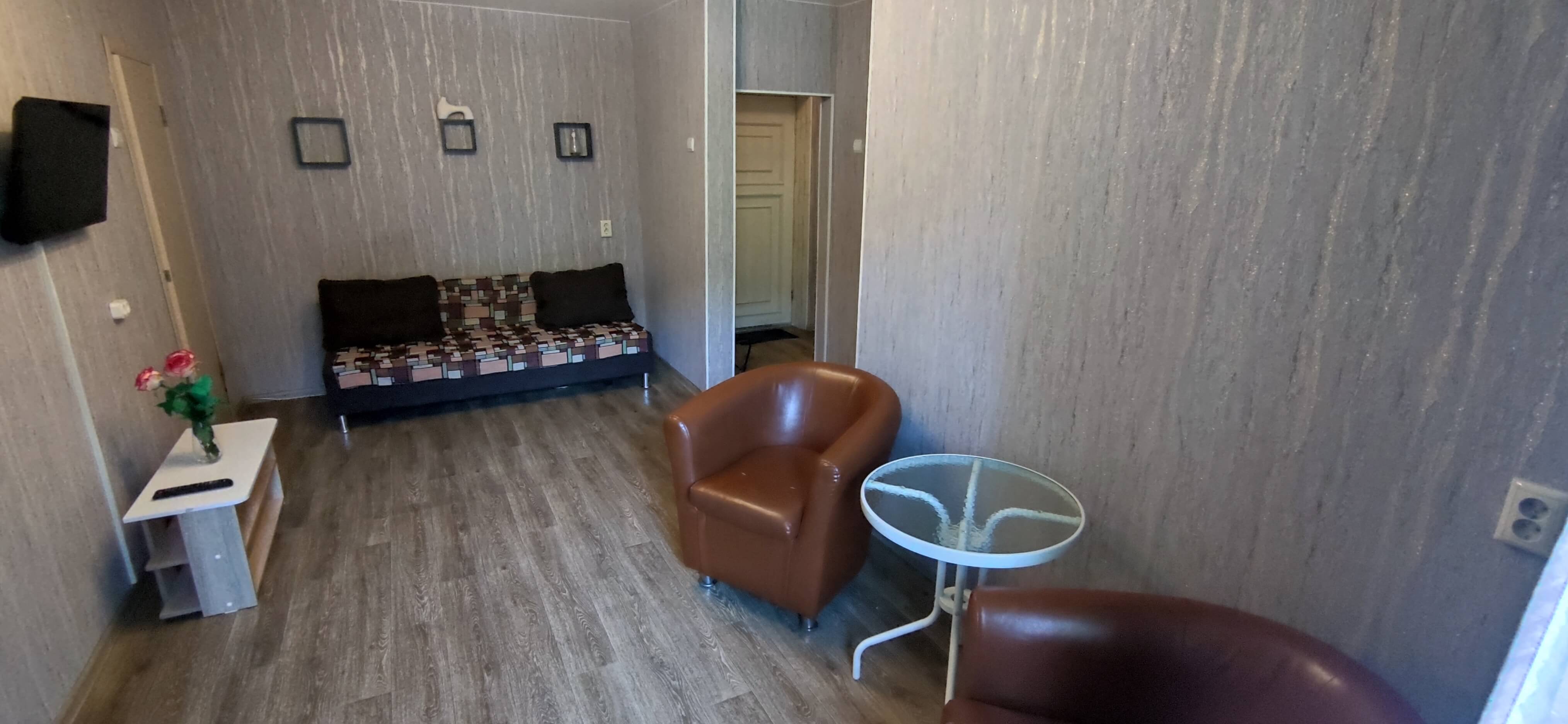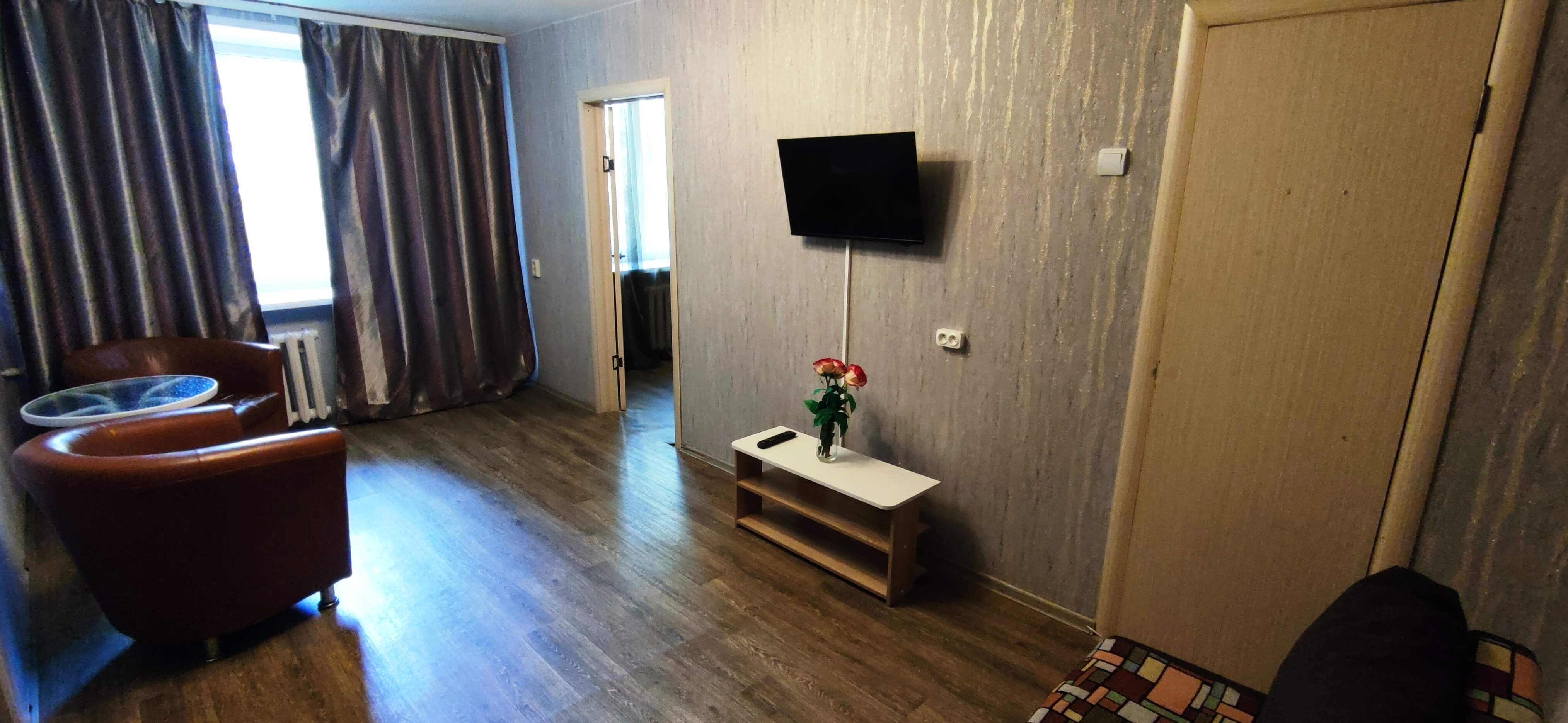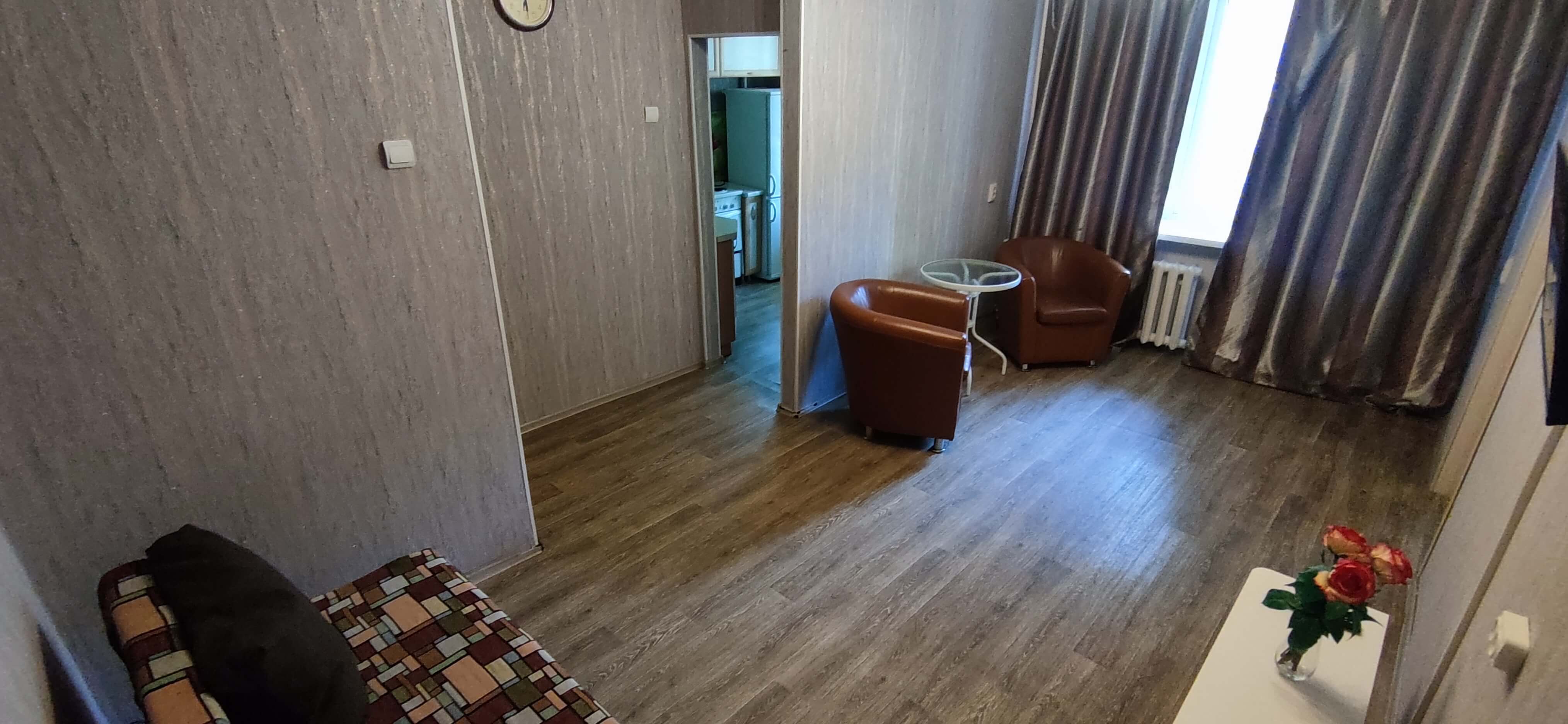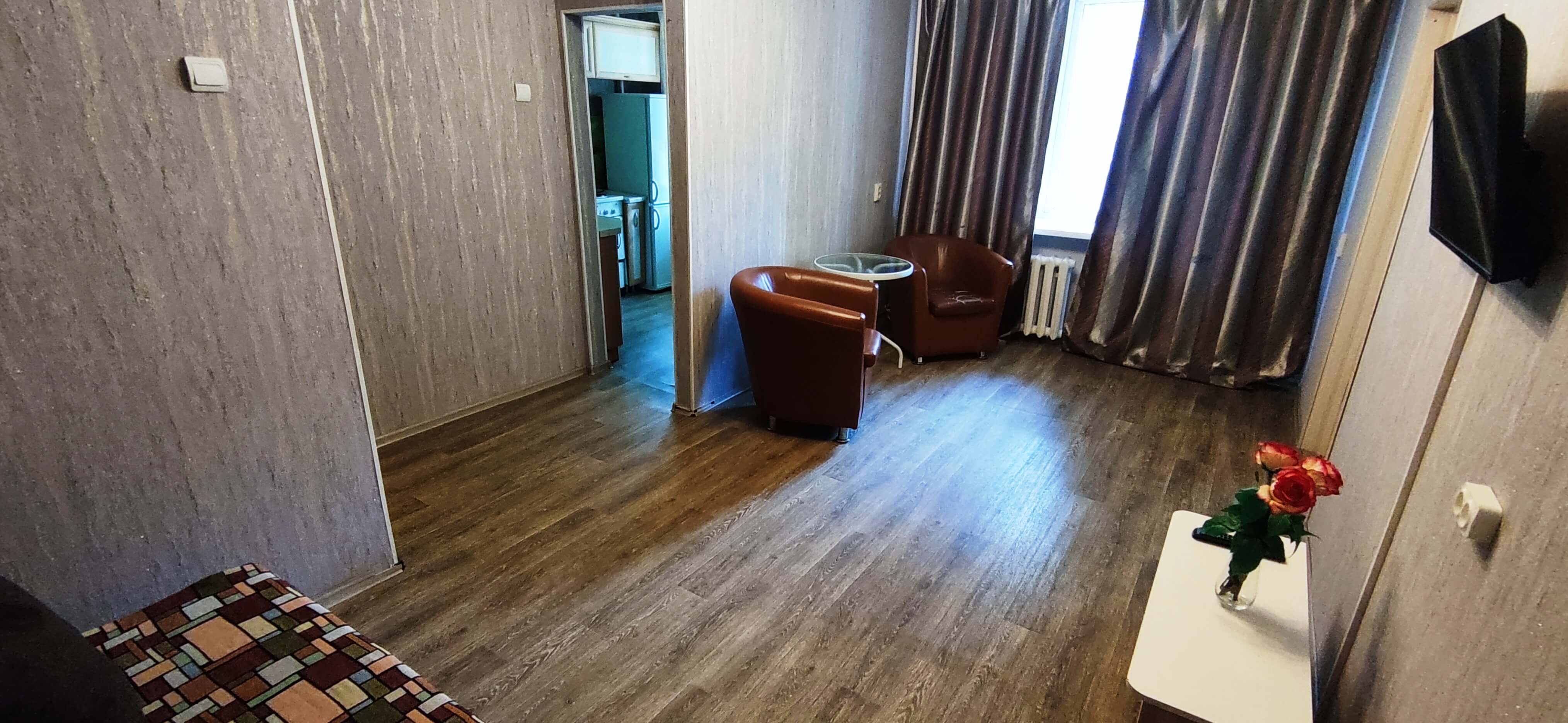 Двухкомнатная квартира, рассчитана на 5 гостей. В квартире есть все для комфортного проживания, полностью меблирована. Кухня оборудована бытовой техникой и посудой. В этой посуточной квартире есть кабельное ТВ и Wi-Fi. Предоставляются отчетные документы. Минимальный срок проживания - 3 часа.